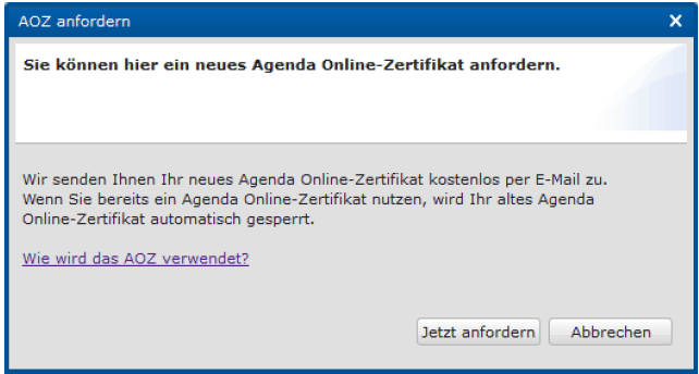 4. Sie erhalten die Info, dass eine neues Agenda Online-Zertifikat per E-Mail versendet wurde.