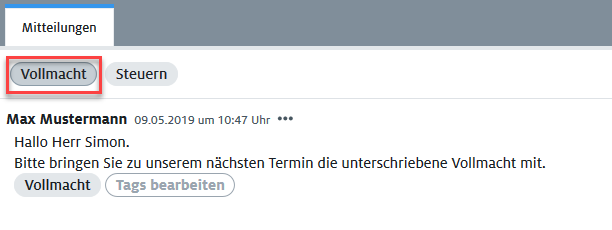 Wie kann ich Mitteilungen ordnen damit ich sie später wieder finde?